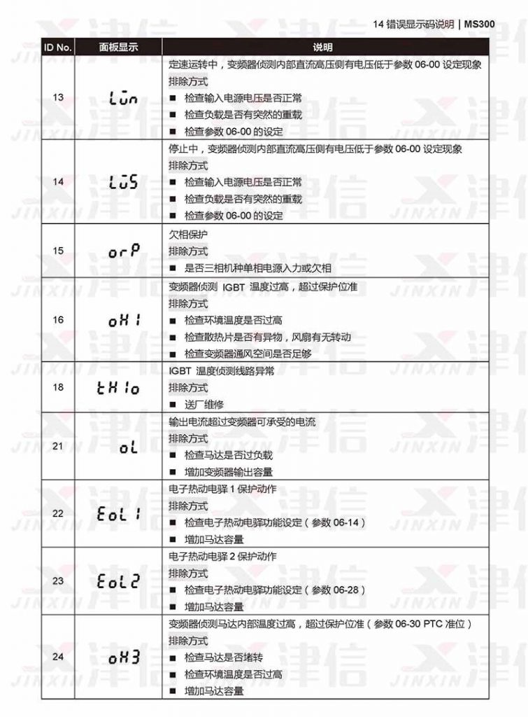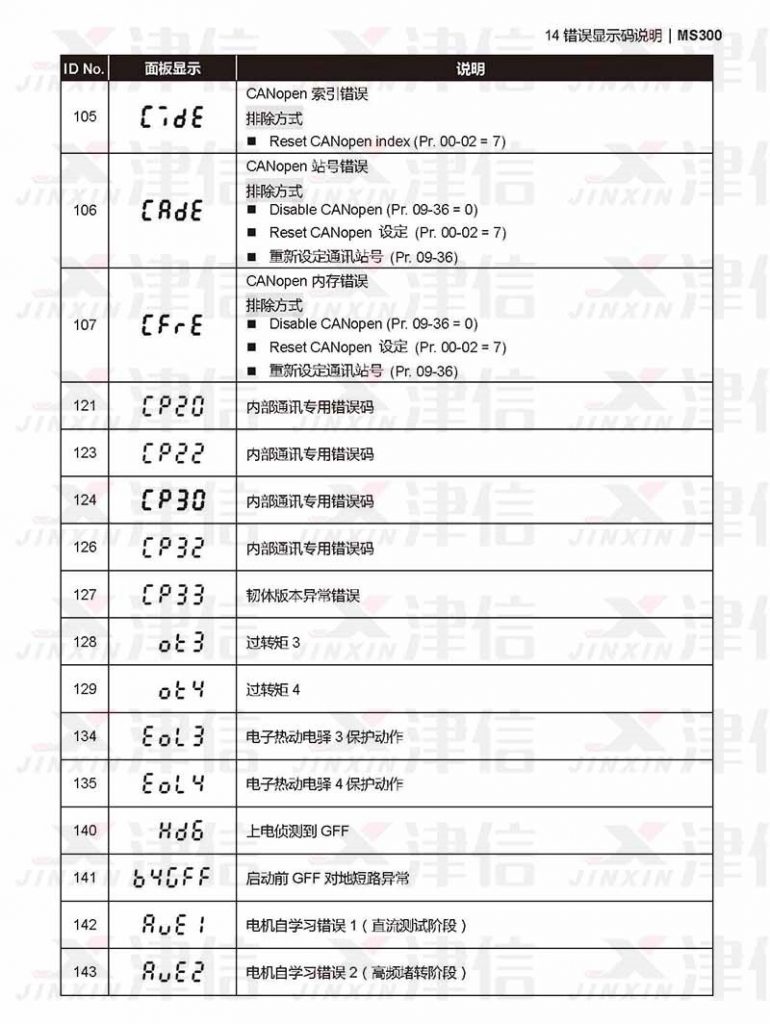 以下是臺(tái)達(dá)變頻器異常故障原因代碼以及故障原因列表。