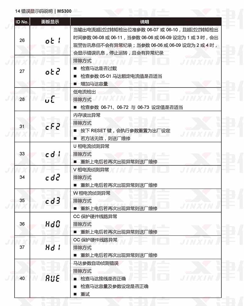 | 誤碼 | 含義 | 處理方法 | |
