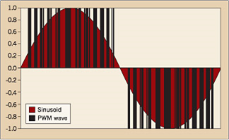 脈波寬度調變(PWM)變頻器是工業中最常用的,因為固定的直流母線電壓具有出色的輸入功率因數,沒有電機齒槽效應,效率更高,成本更低。PWM 變頻器使用一系列不同長度的電壓脈沖來模擬正弦波。理想情況下,脈沖定時,以便驅動器的時間平均積分產生完美的正弦曲線。產生該波形的當前選擇方法是通過比較器運行三角波和正弦波,并且只要正弦波的值大于三角波,就輸出電壓脈沖。用于產生電壓脈沖的當前電氣元件是絕緣柵雙極晶體管(IGBT),盡管可控硅整流器(SCR)也可以工作。在不久的將來,注入增強型柵極晶體管(IEGT)將用于執行此任務。更長遠來說,憶阻器可能會成為這項任務的首選組成部分。