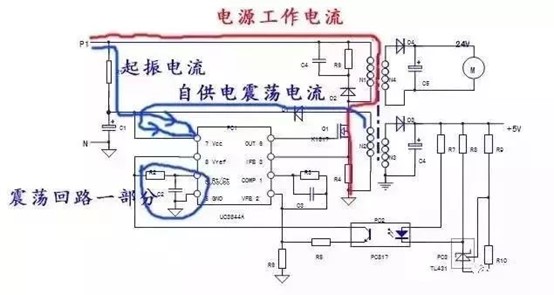 - 對UC3844單獨上電,短接PC2輸入側,若電路起振,說明故障在PC2輸入側外圍電路;電路不起振則檢查輸出側電路。