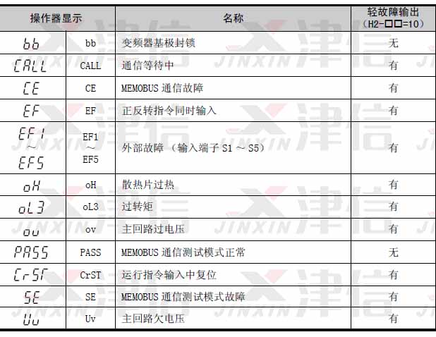 安川變頻器在出現故障代碼時,一共有三種表現形式: